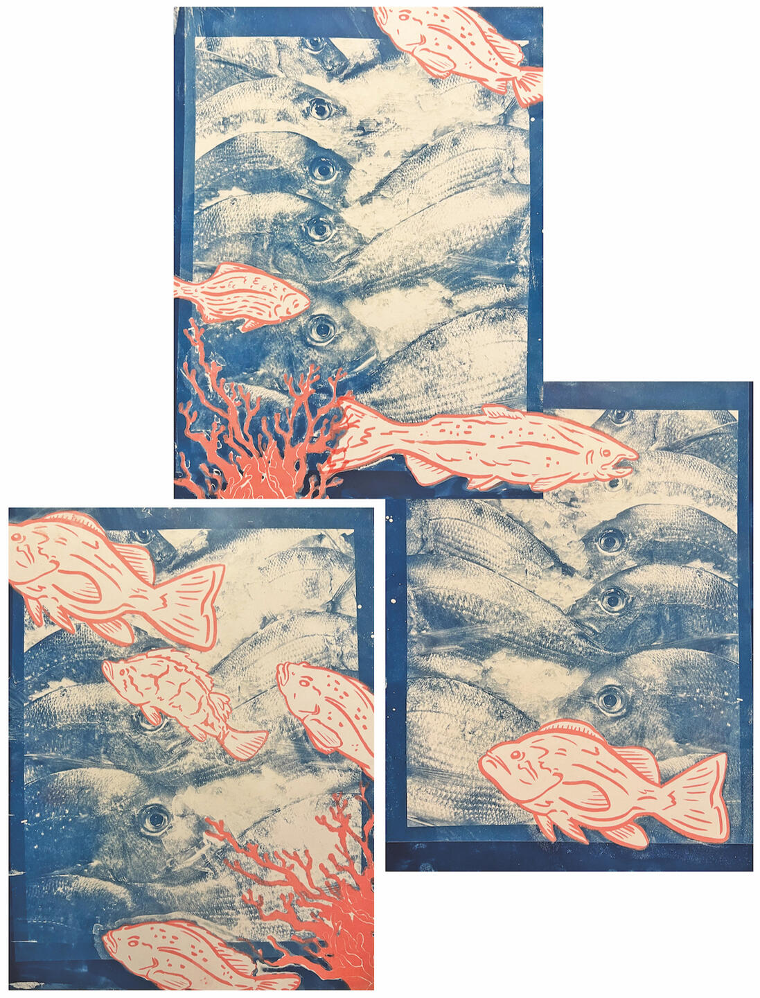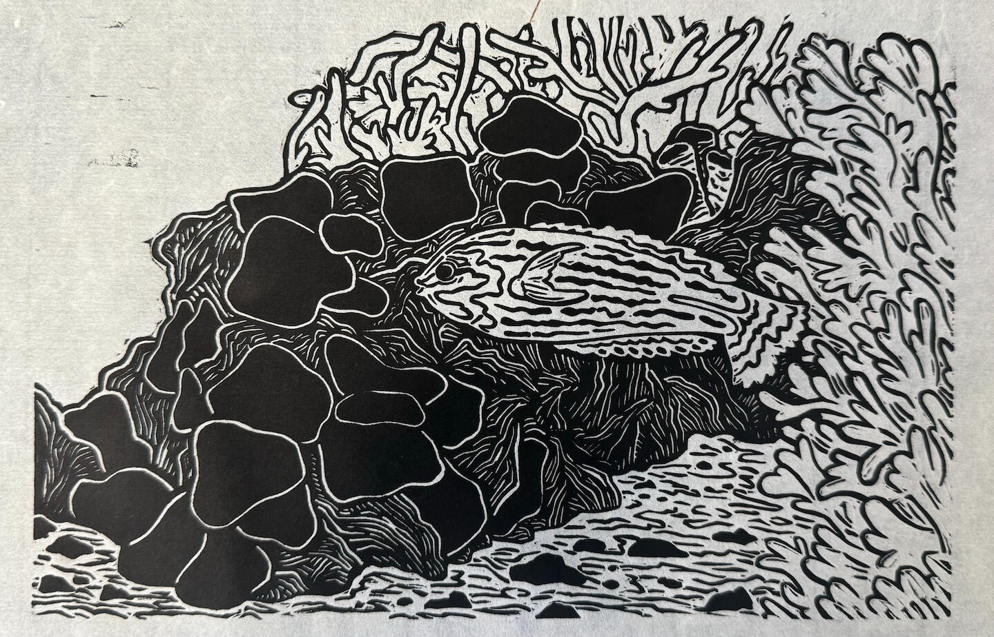 Bird Gone Fishing (Collaboration With Grace Bougher) - Woodcut - 2023
