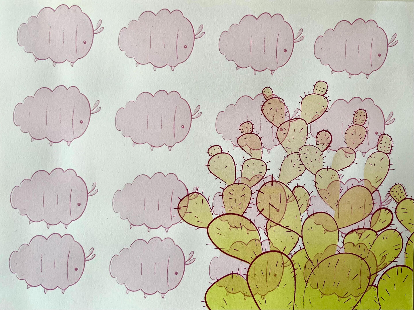 March of the Cochineal - Silk Screen, Cochineal Handmade Ink - 2022